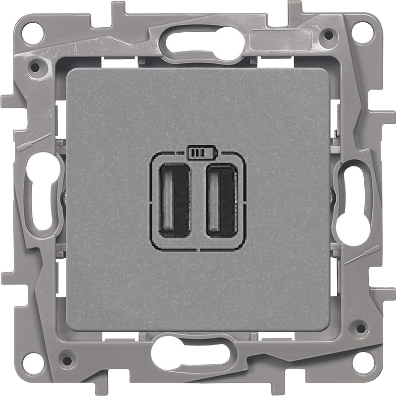 Розетка USB тип A+A без рамки Legrand Etika 2-м. 2400мА алюминий картинка