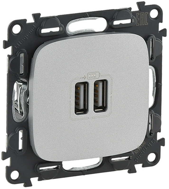 Розетка USB тип A+A без рамки Legrand Valena Allure 2-м. 1500мА алюминий картинка