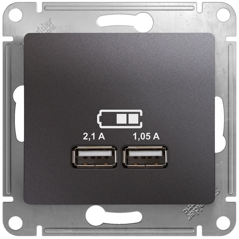 Розетка USB тип A+A без рамки Systeme Electric Glossa 2-м. 2100мА графит картинка