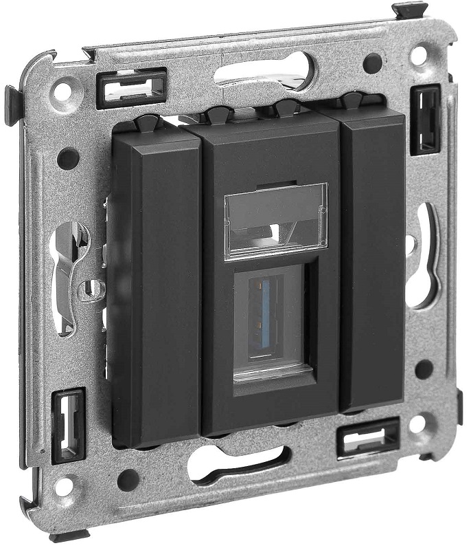 USB 3.0 розетка. Назначение: для монтажа в подрозеточные коробки глубиной не менее 45 мм (код 59301). Используется в качестве информационной розетки для передачи сигнала (подключение проекторов, мониторов и др.)