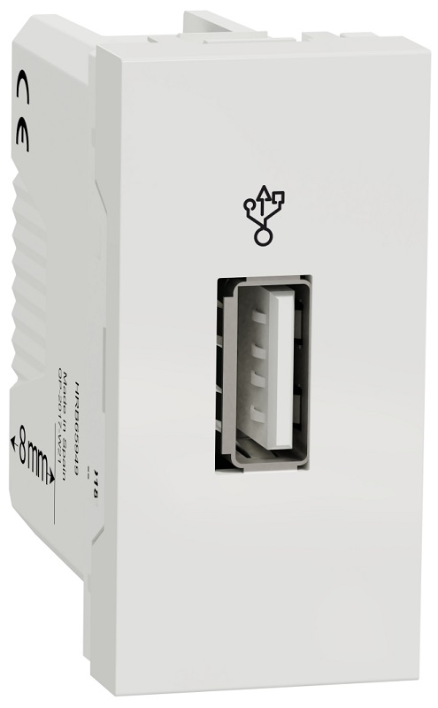 Розетка USB тип A без рамки Schneider Electric Unica Modular 1-м. 1 мод. 2400мА белый