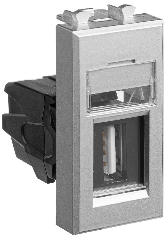 Розетка USB тип А модульная DKC Avanti 1-м. 1 мод. 2000мА закаленная сталь