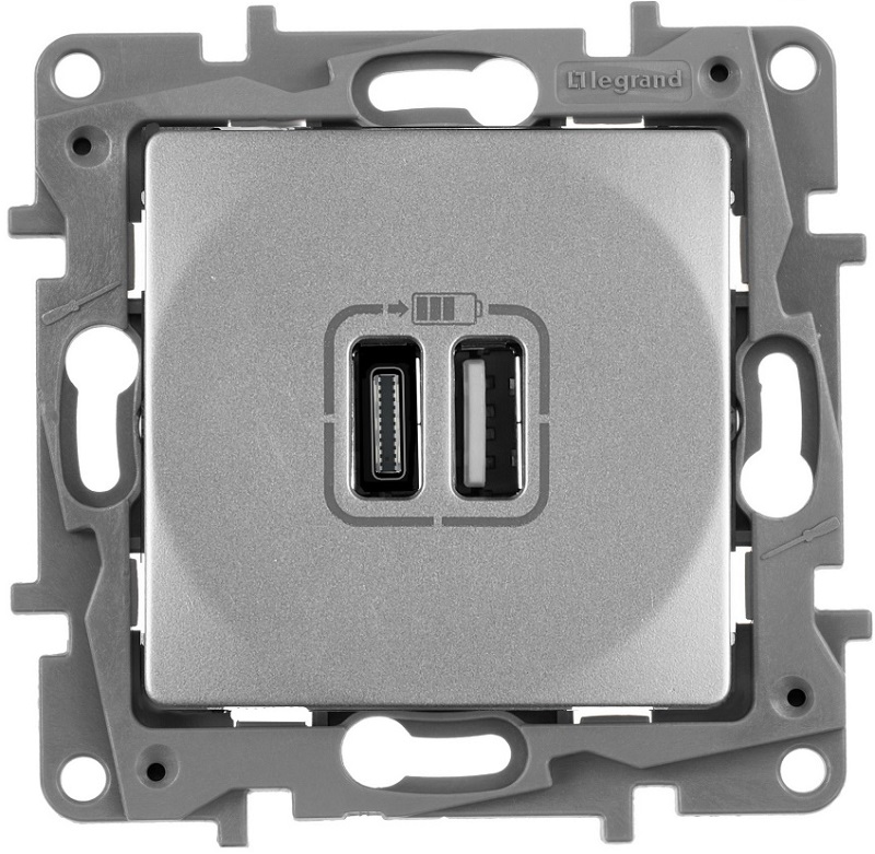 Розетка USB тип А+С без рамки Legrand Etika 2-м. 3000мА алюминий картинка