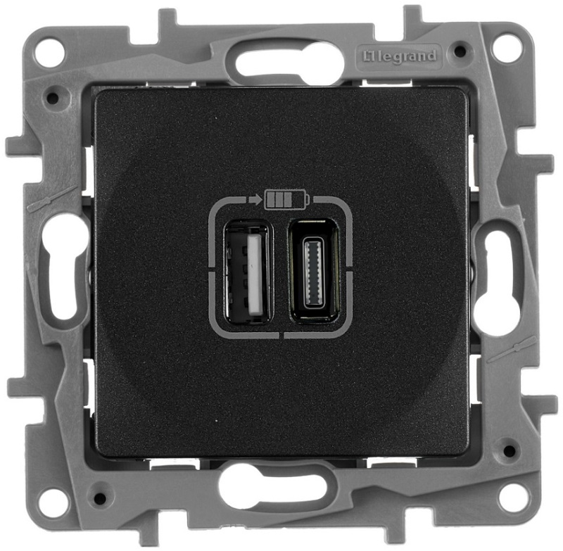 Розетка USB тип А+С без рамки Legrand Etika 2-м. 3000мА антрацит картинка