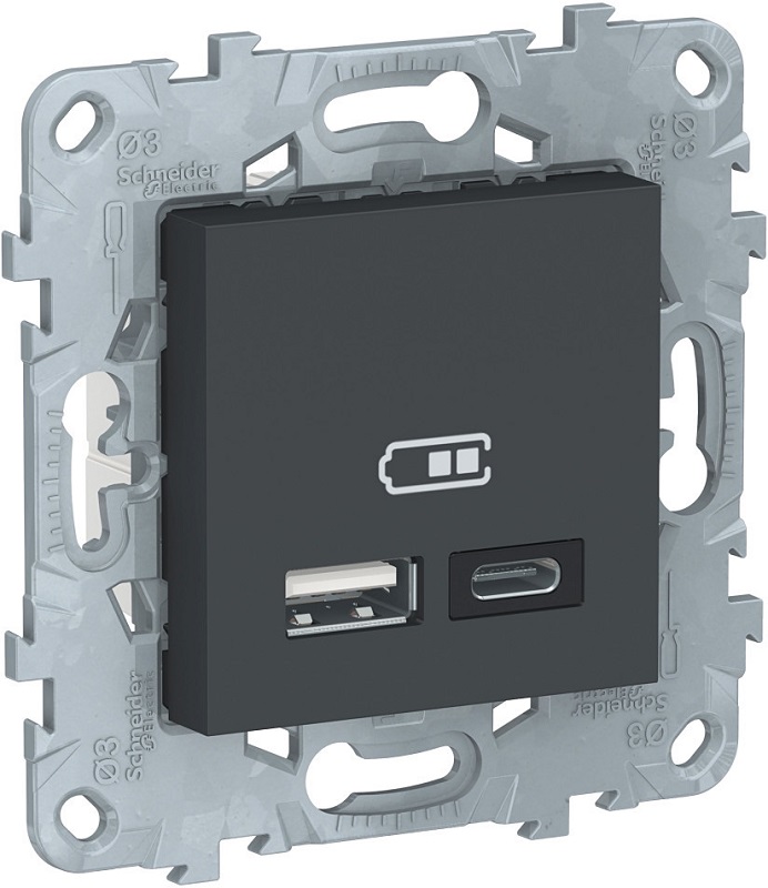Розетка USB тип A+С без рамки Schneider Electric Unica New 2-м. 2400мА антрацит