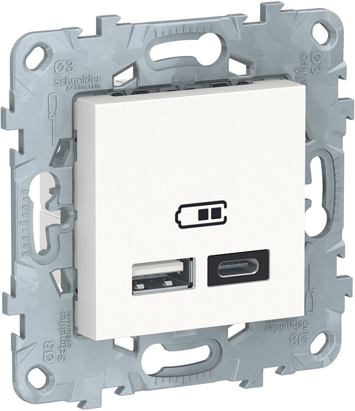 Розетка USB тип A+С без рамки Schneider Electric Unica New 2-м. 2400мА белый