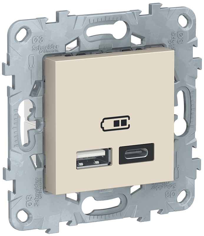 Розетка USB тип A+С без рамки Schneider Electric Unica New 2-м. 2400мА бежевый картинка