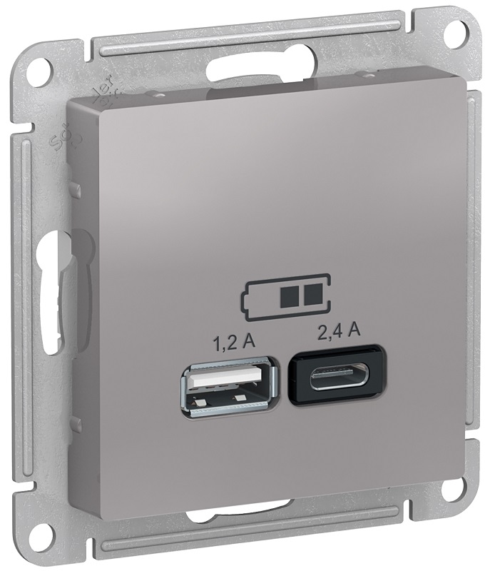 Розетка USB тип A+С без рамки Systeme Electric AtlasDesign 2-м. 2400мА алюминий