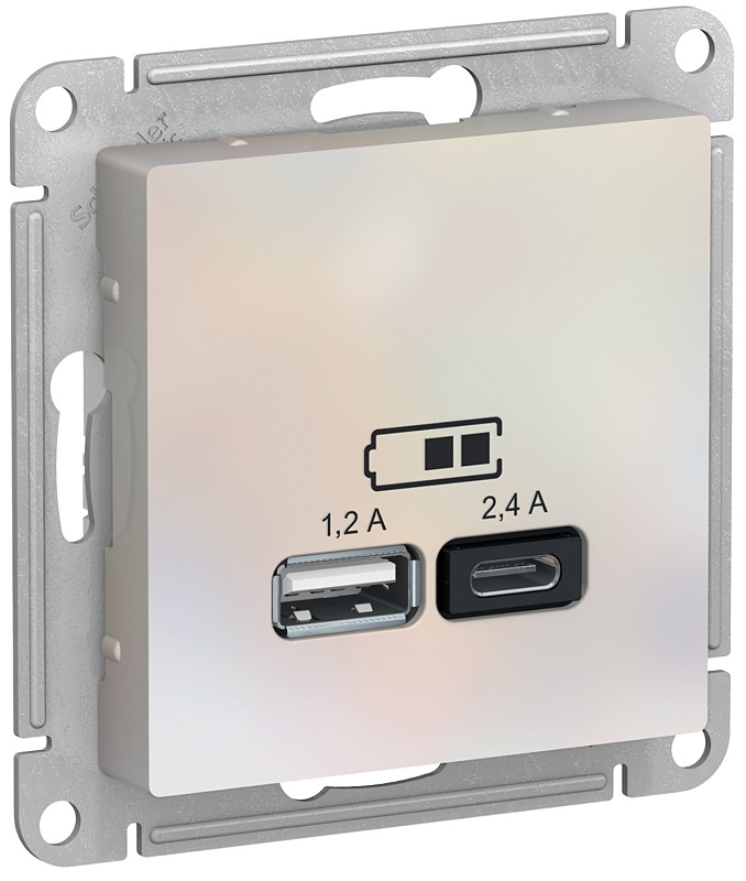 Розетка USB тип A+С без рамки Systeme Electric AtlasDesign 2-м. 2400мА жемчуг