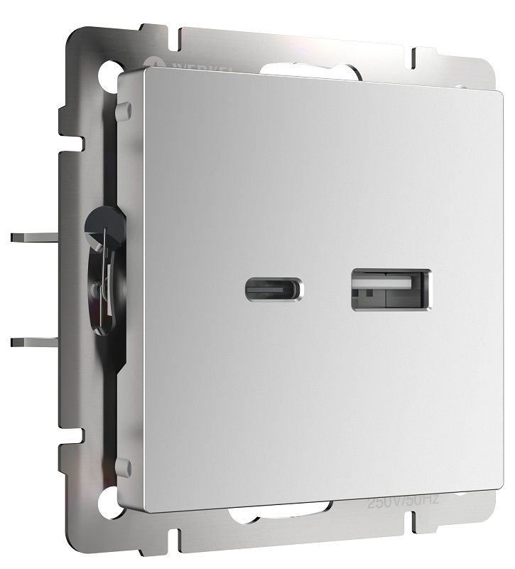 Розетка USB тип A+С без рамки Werkel 2-м. серебряный глянцевый