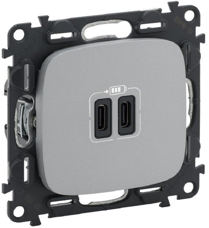 Розетка USB тип C+C без рамки Legrand Valena Allure 2-м. 3000мА алюминий картинка
