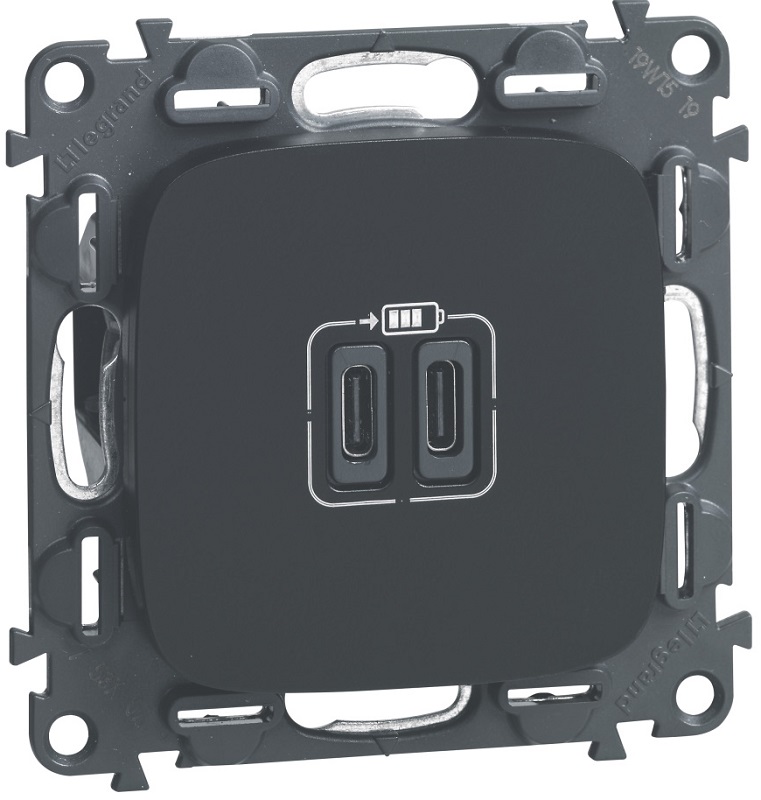 Розетка USB тип C+C без рамки Legrand Valena Allure 2-м. 3000мА антрацит картинка