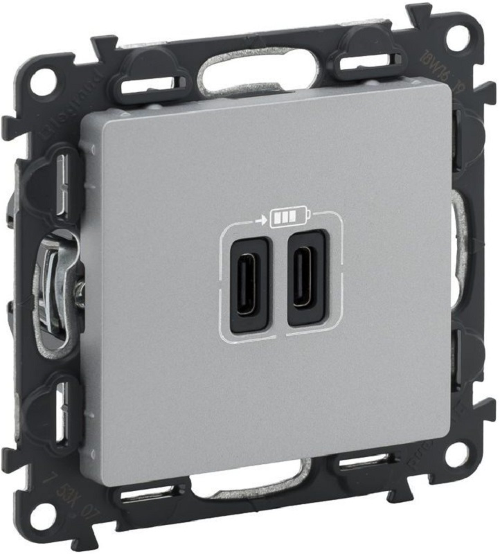 Розетка USB тип C+C без рамки Legrand Valena Life 2-м. 3000мА алюминий картинка