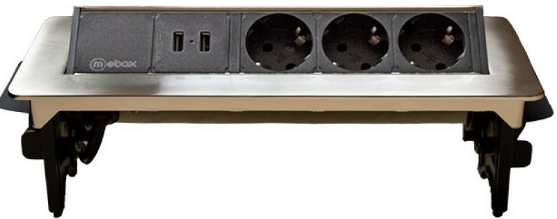 Розетка встраеваемая полуавтоматическая Mebax 47 3-м.+2xUSB 276х93мм серый металлик