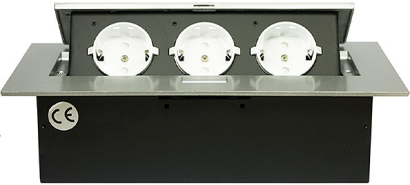 Удлинитель для офиса - устройство для встраивания в стол, позволяющее подключить одновременно три электроприбора. Это решение отлично подходит для переговорных офисных помещений: зачастую требуется подключение зарядок для ноутбуков и мобильных телефонов. Удлинитель эргономично решает эту задачу. С использованием удлинителя пользователь избавлен от висящих путающихся проводов и падающих со стола переносных розеточных блоков. Подключение техники из одной точки очень удобно. В компании Мебакс можно купить врезной удлинитель для офиса на 3 розетки с доставкой по Москве и России.