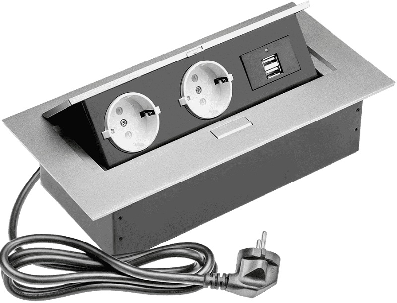 Розетка встраеваемая полуавтоматическая Sete 2-м.+2xUSB 225х110х67мм серый