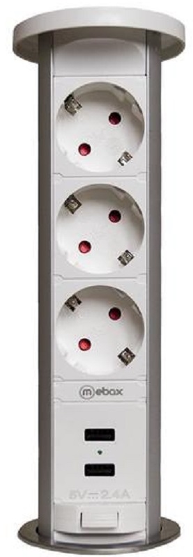 Блок розеток Mebax 105W предназначен для подключения электроприборов, кухонной, бытовой, компьютерной техники через разъемы евророзетка и USB. Ручной привод, вертикальное позиционирование. Устройство подходит для среднего сегмента мебели.