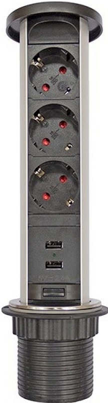 Розетка встраеваемая выдвижная механическая Mebax 105W 3-м.+2xUSB Ø60мм IP44 черный