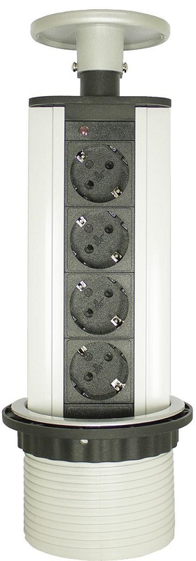 Розетка встраеваемая выдвижная механическая Mebax LK4 4-м. Ø100мм серебро картинка