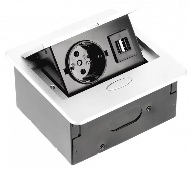 Розетка встраиваемая полуавтоматическая GTV 1-м.+2xUSB 127х118х66мм белый