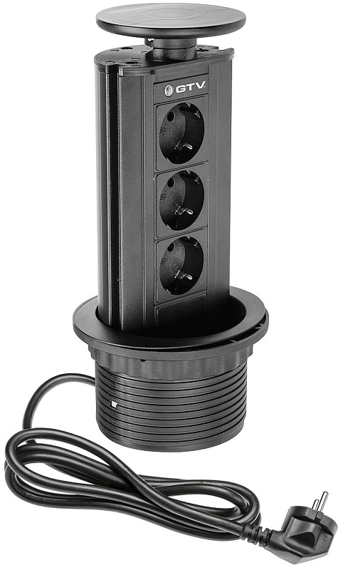 Розетка встраиваемая выдвижная механическая GTV 3-м. Ø100мм черный