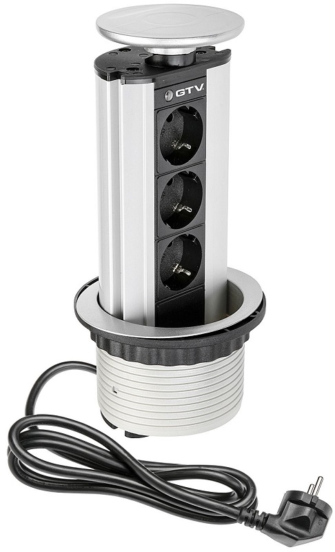 Розетка встраиваемая выдвижная механическая GTV 3-м. Ø100мм серый картинка