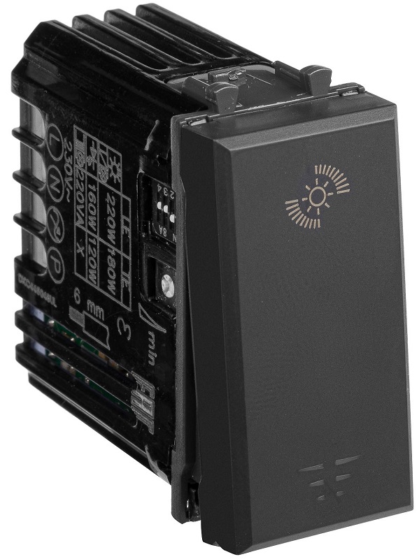 Светорегулятор кнопочный модульный DKC Avanti 1-кл. 1 мод. 5–220Вт черный матовый