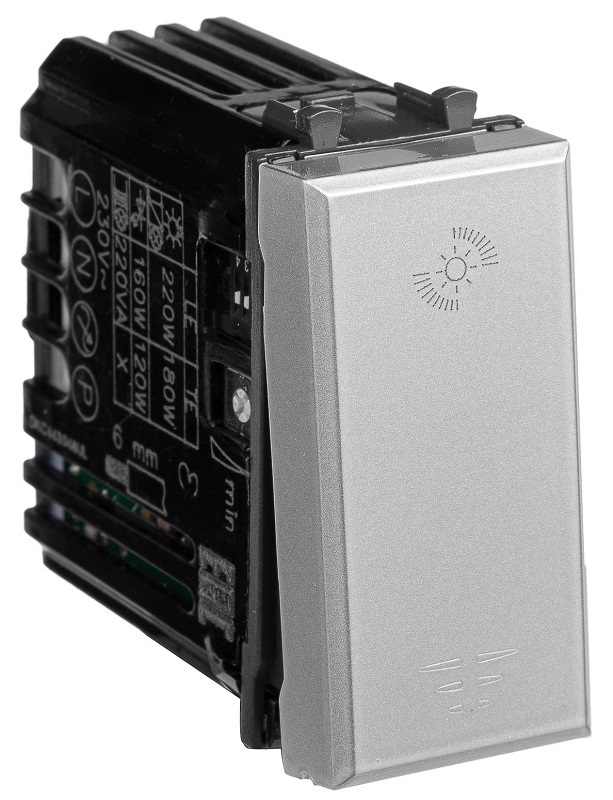 Светорегулятор кнопочный модульный DKC Avanti 1-кл. 1 мод. 5–220Вт закаленная сталь картинка