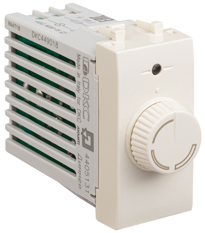 Светорегулятор поворотно-нажимной модульный DKC Avanti 1-м. 1 мод. 60–800Вт ванильная дымка