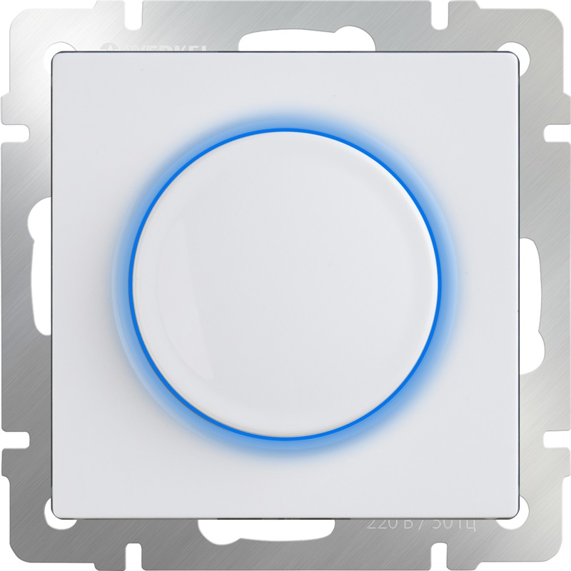 Светорегулятор с подсветкой поворотно-нажимной без рамки Werkel 5-600Вт белый глянцевый