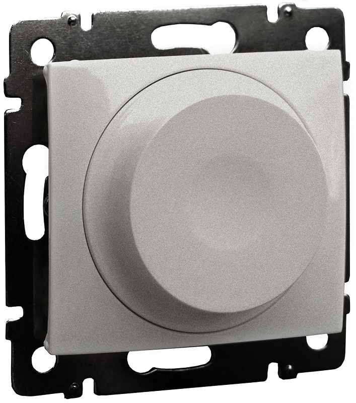 Диммер для резистивной (R), индуктивной (L) или емкостной (C) нагрузки. Светорегулятор с поворотной ручкой, без нейтрали. Двухпроводное подключение (возможна установка вместо обычного выключателя).