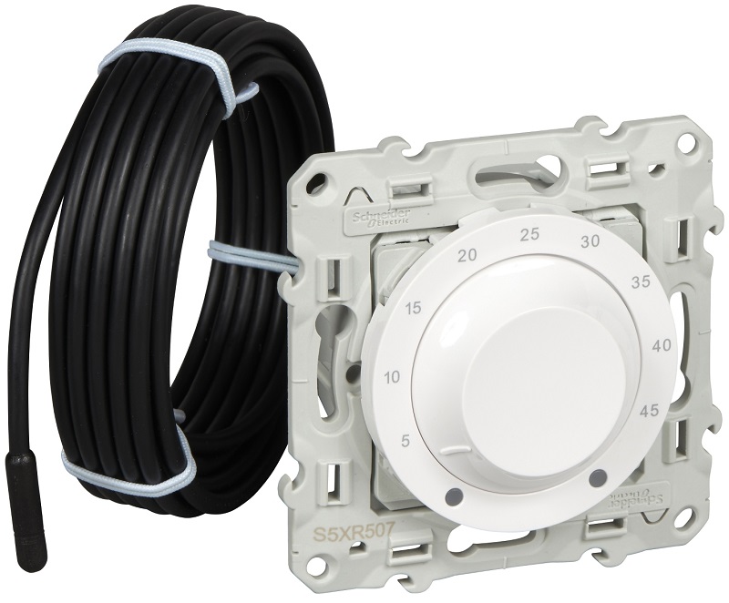 Терморегулятор механический с датчиком без рамки Schneider Electric Odace 0С +50С белый