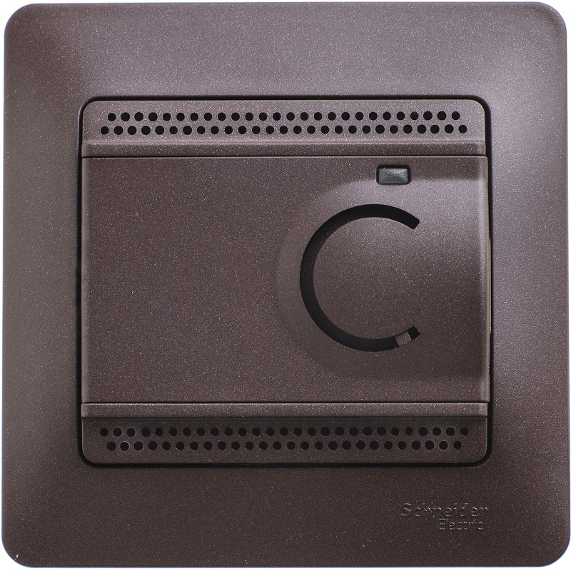 Терморегулятор механический с датчиком с рамкой Systeme Electric Glossa 0С+50С шоколад картинка