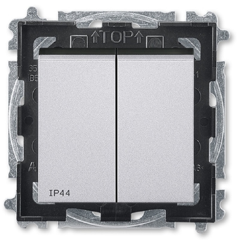 Выключатель без рамки ABB EPJ Levit 2-кл. IP44 серебро/дымчатый чёрный картинка