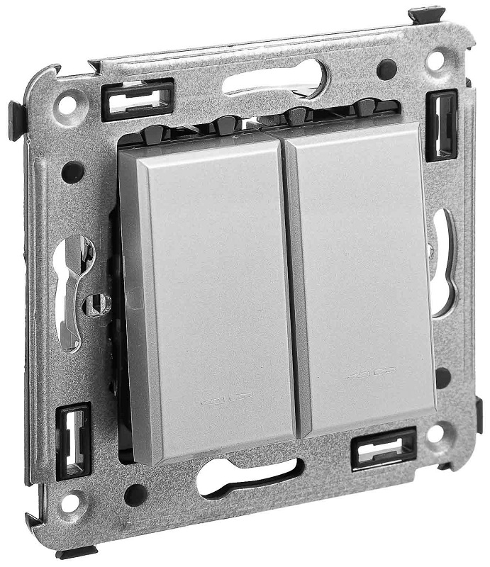 Двухклавишный выключатель ДКС используется для управлением контуром освещения. Выключатель предназначен для скрытого монтажа в стену. Номинальное напряжение – 230 В, номинальный ток – 16 А.