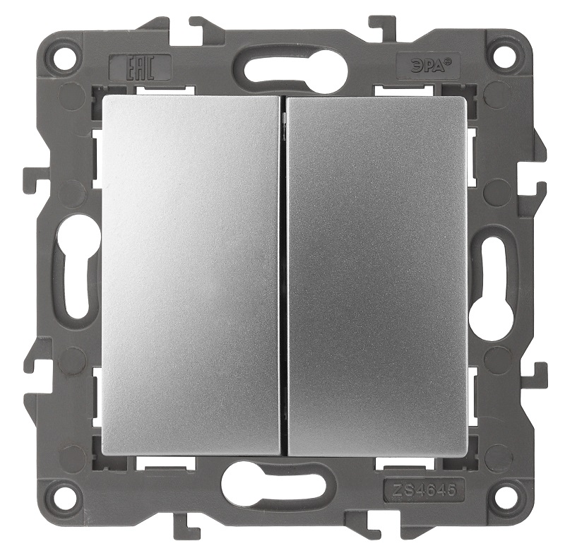 Выключатель без рамки Эра Elegance 2-кл. алюминий картинка