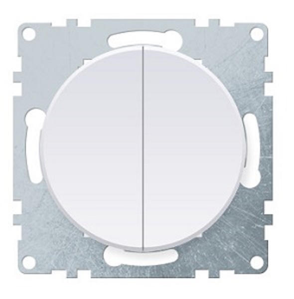 Выключатель двухклавишный предназначен для коммутации однофазных электрических нагрузок бытового или аналогичного назначения напряжением до 250 В переменного тока. Клавиши изготовлены из поликарбоната.
