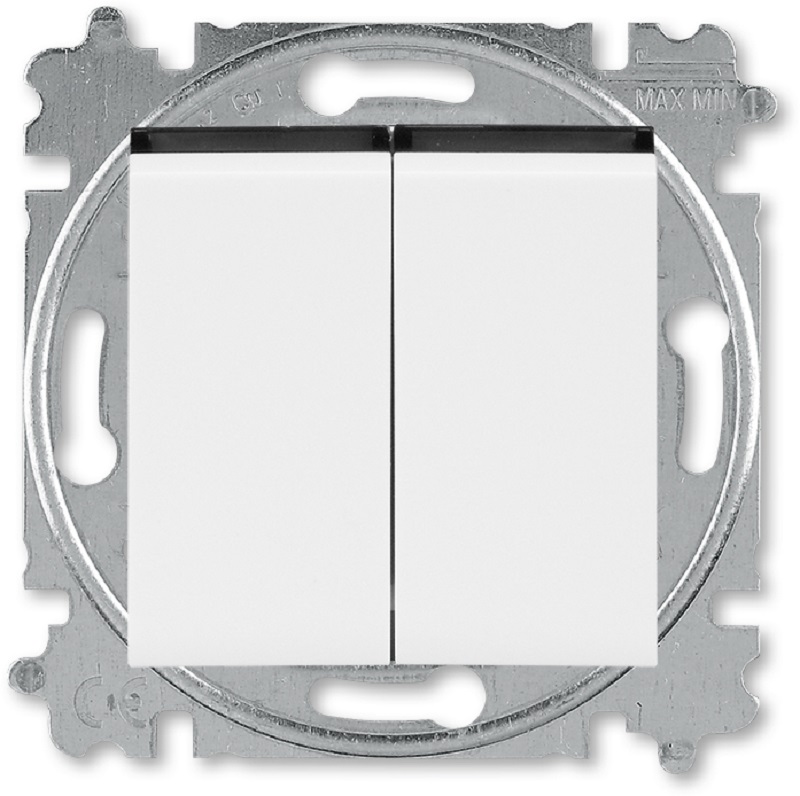 Выключатель кнопочный без рамки ABB EPJ Levit 2-кл. белый/дымчатый чёрный картинка