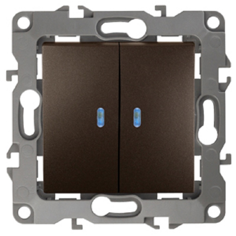 Выключатель с подсветкой без рамки Эра S12 2-кл 10А бронза