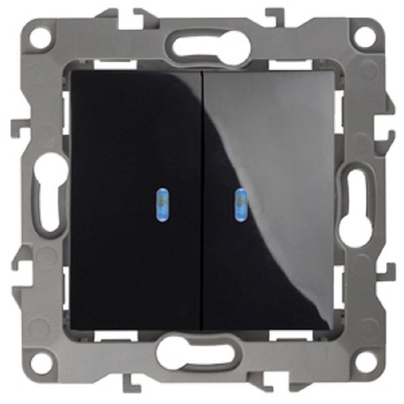 Выключатель с подсветкой без рамки Эра S12 2-кл 10А черный картинка