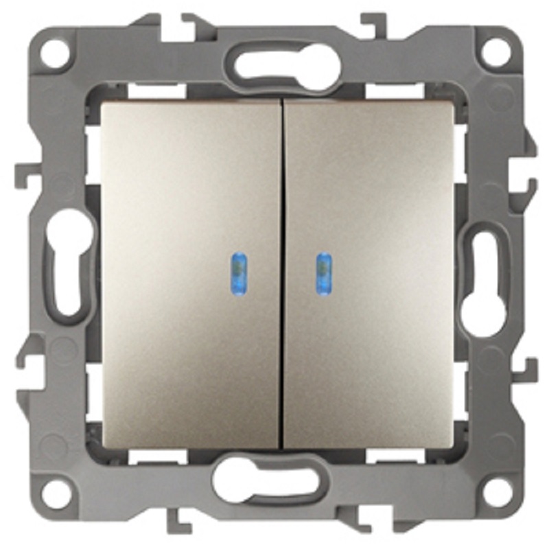 Выключатель с подсветкой без рамки Эра S12 2-кл 10А шампань картинка