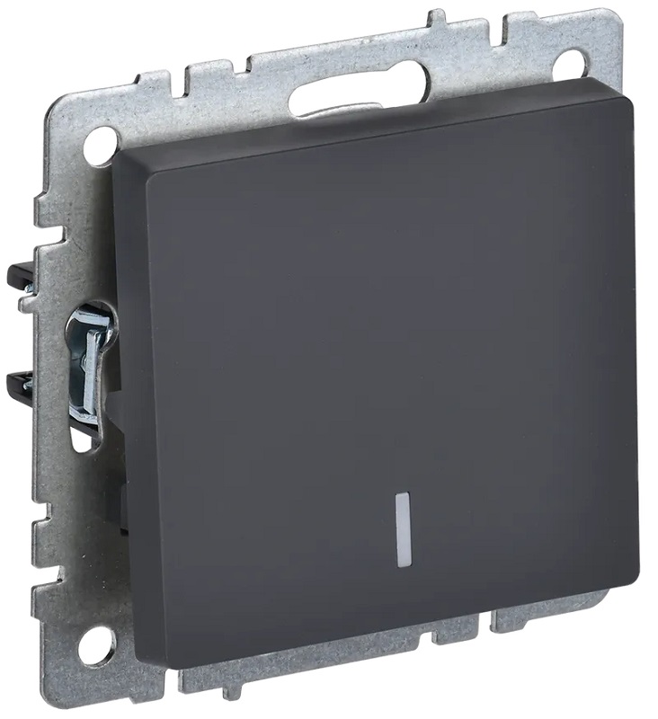 Выключатель с подсветкой без рамки IEK Brite ВС10-1-1-БрГ 1-кл. графит