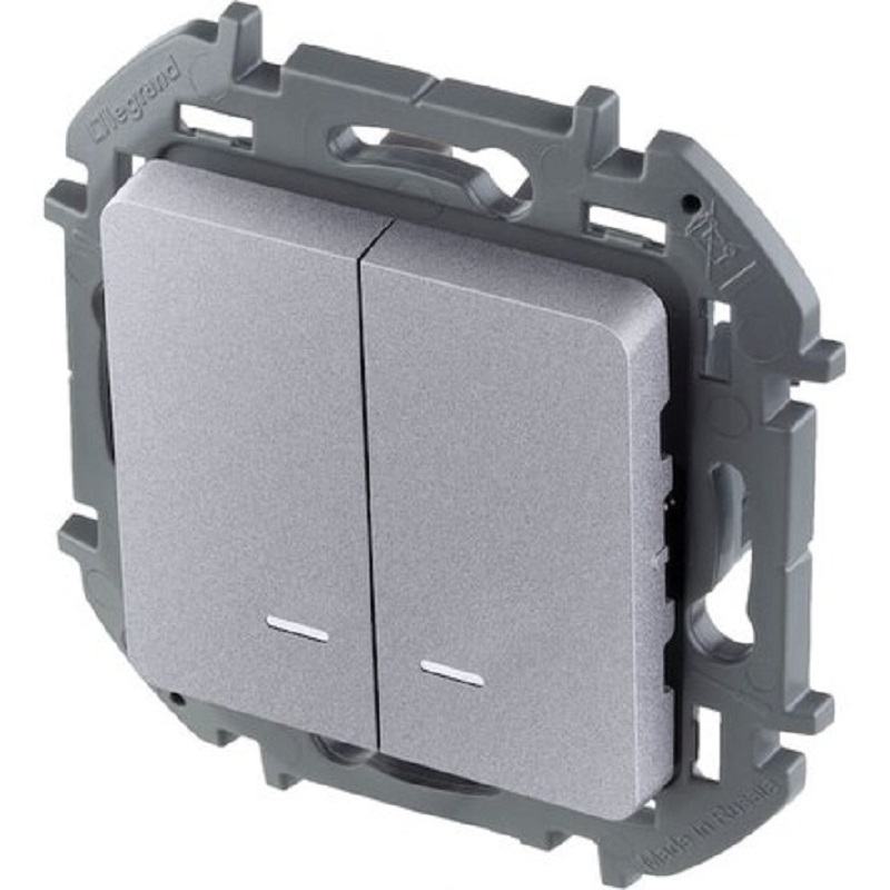Выключатель с подсветкой без рамки Legrand Inspiria 2-кл. алюминий