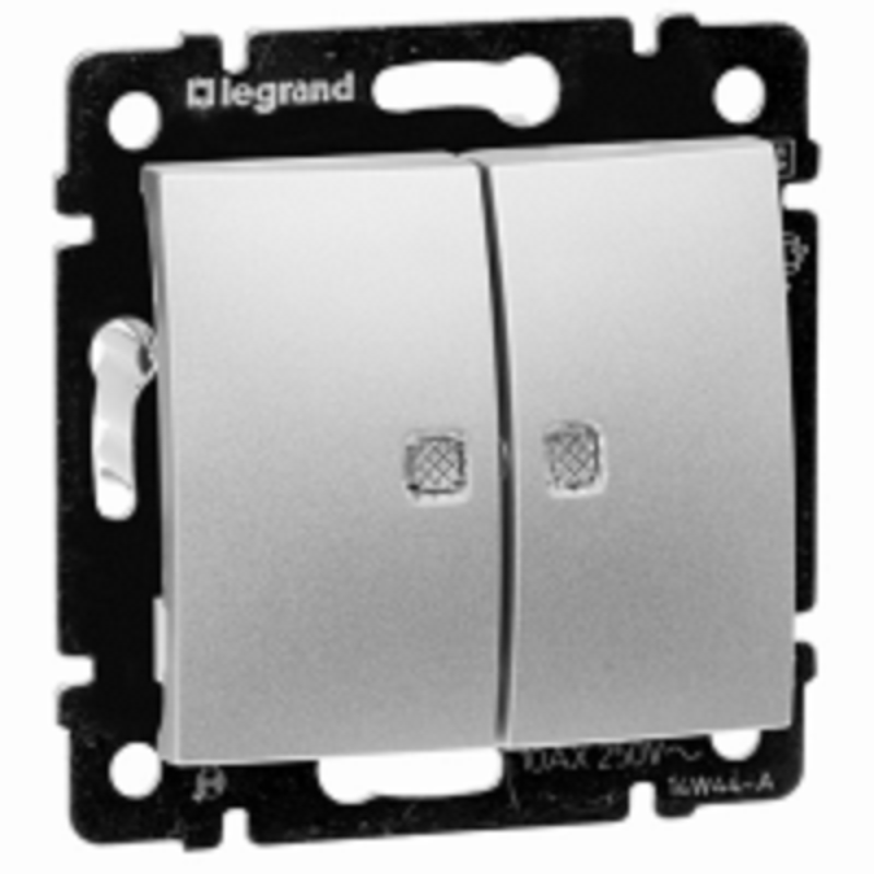 Выключатель с подсветкой без рамки Legrand Valena 2-кл. алюминий