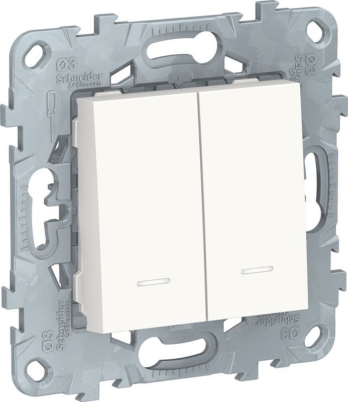 Выключатель с подсветкой без рамки Schneider Electric Unica New 2-кл. белый