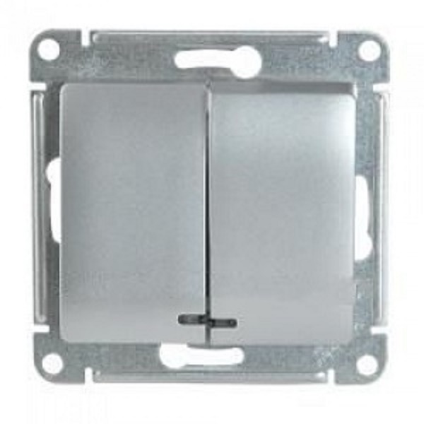 Выключатель с подсветкой без рамки Systeme Electric Glossa 2-кл. алюминий картинка