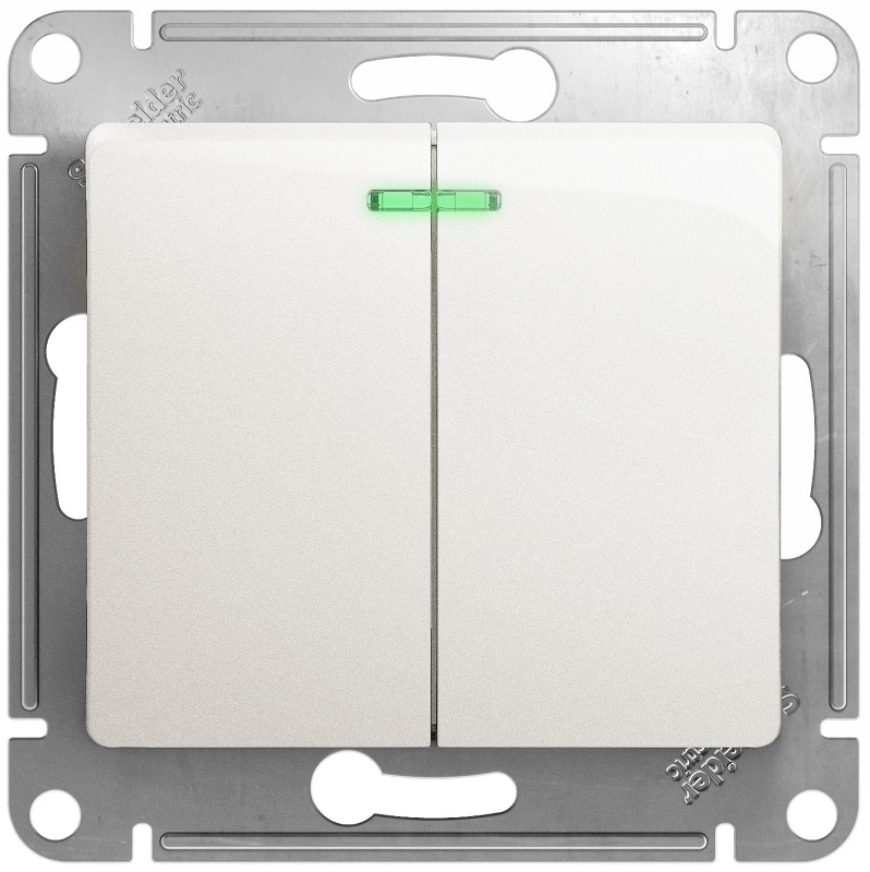 Выключатель с подсветкой без рамки Systeme Electric Glossa 2-кл. перламутр картинка