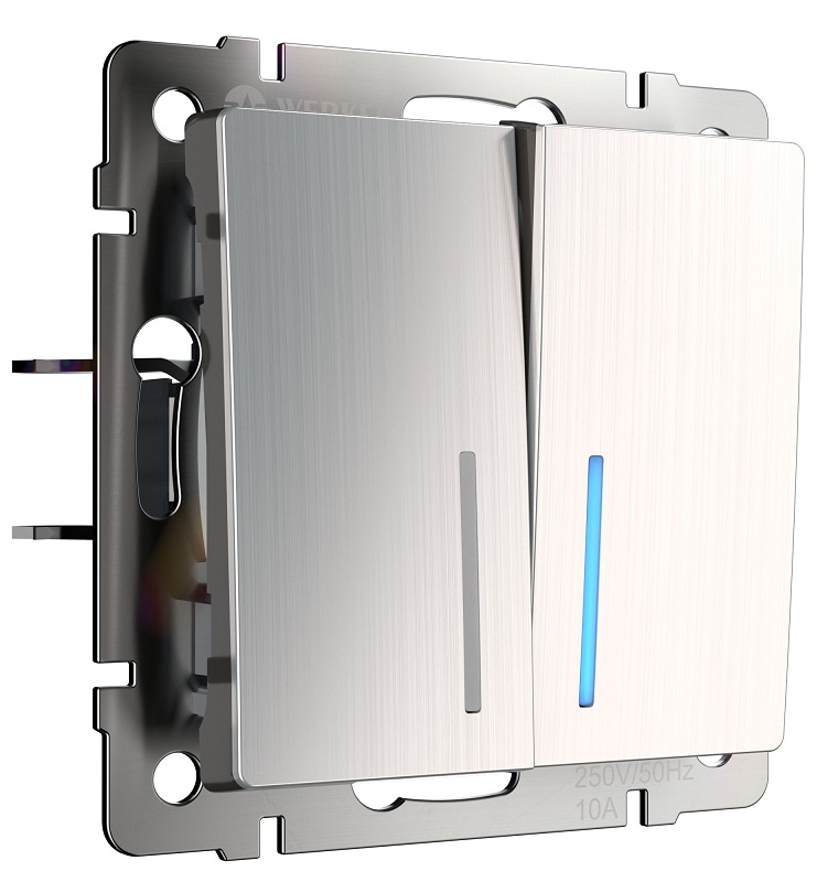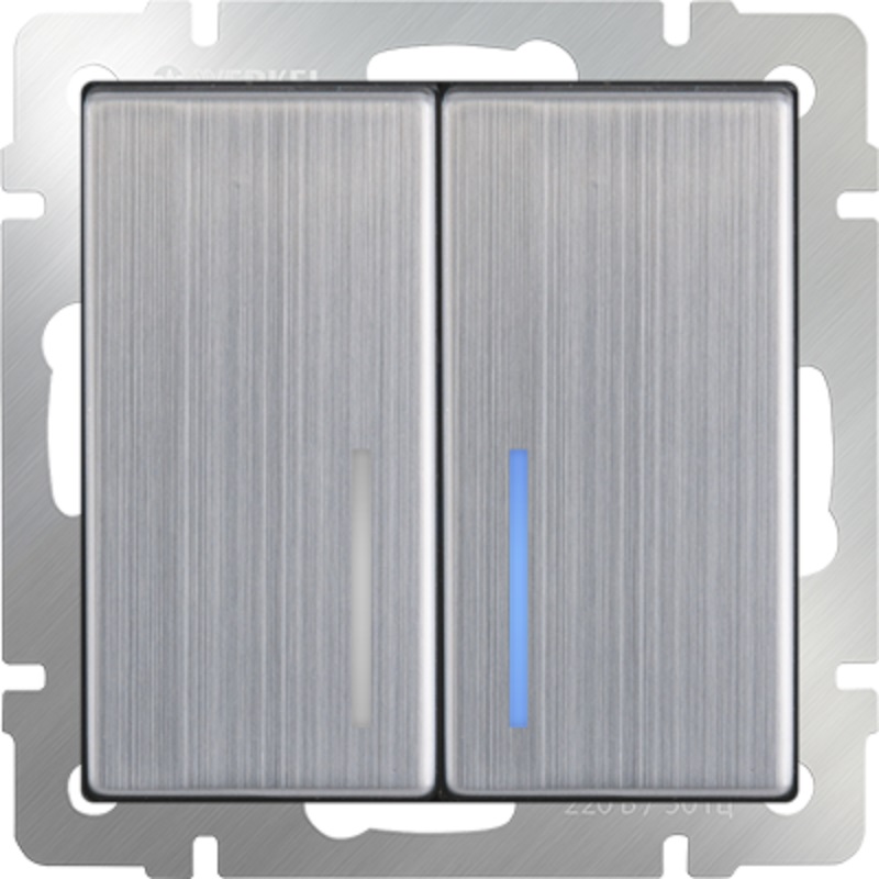 Выключатель с подсветкой без рамки Werkel 2-кл. глянцевый никель