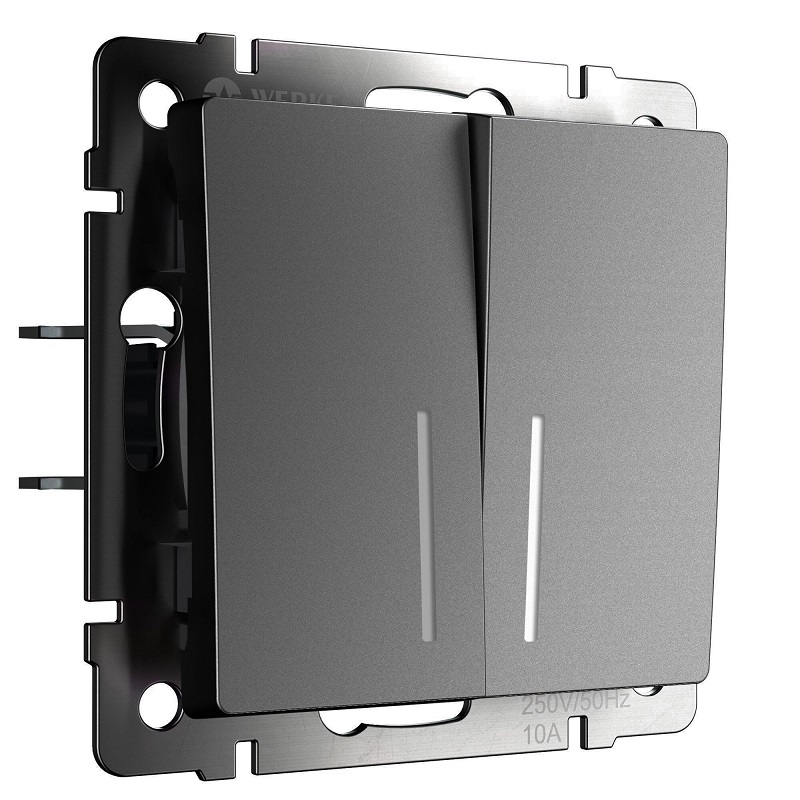 Выключатель с подсветкой без рамки Werkel 2-кл. графит матовый
