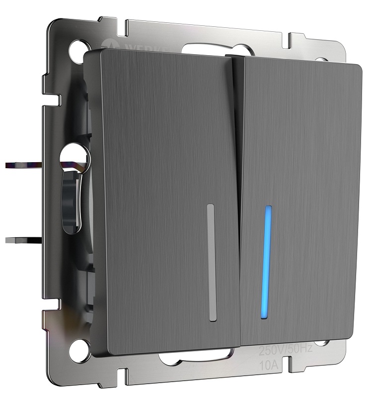 Выключатель с подсветкой без рамки Werkel 2-кл. графит рифленый